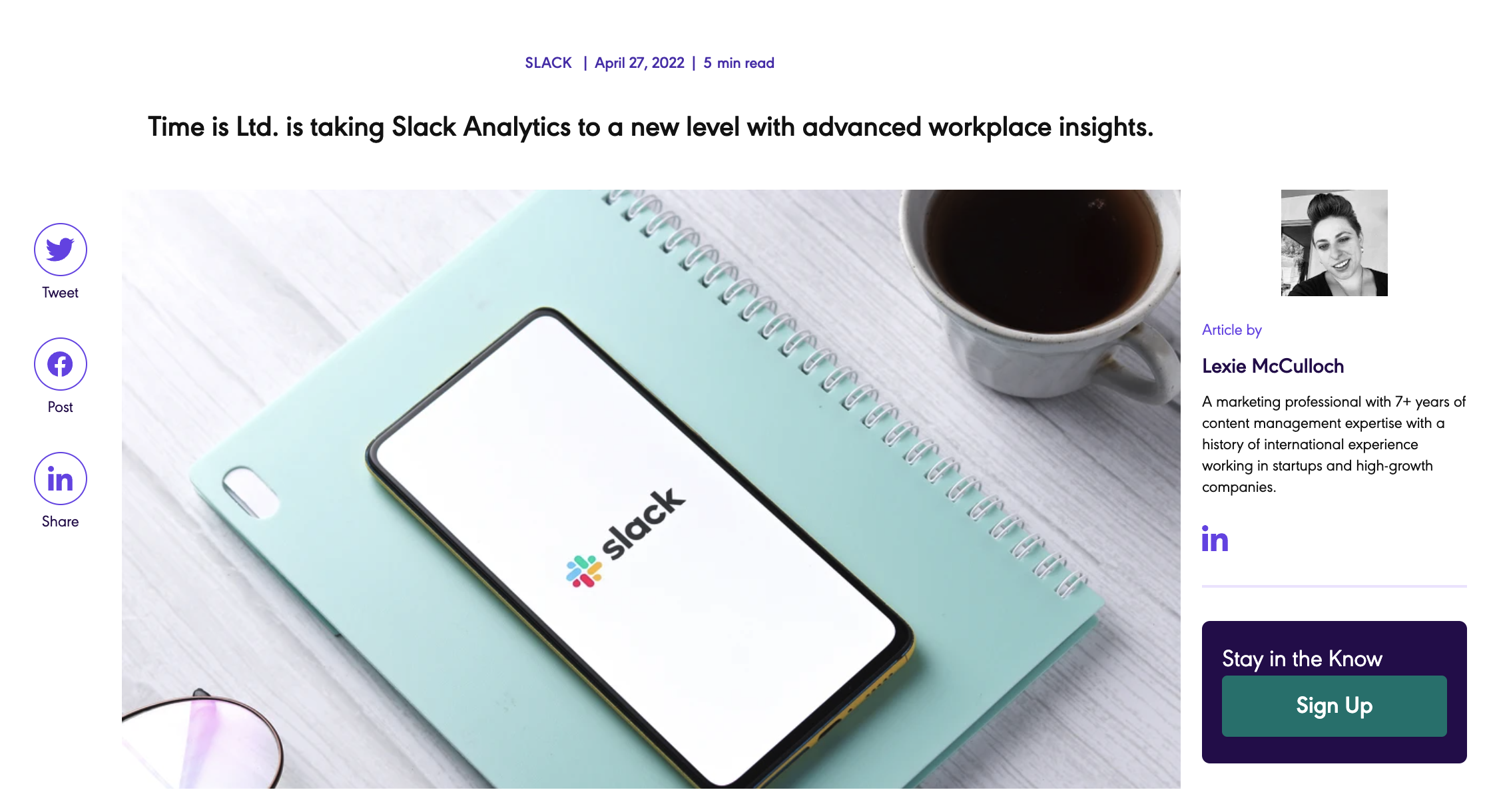 Time is Ltd. is taking Slack Analytics to a new level with advanced workplace insights. For the first time, organizations will have the power to unlock actionable data, game-changing metrics, and derive unprecedented insights on employee collaboration at the team, departments, and company-wide level. Read the original press release here.